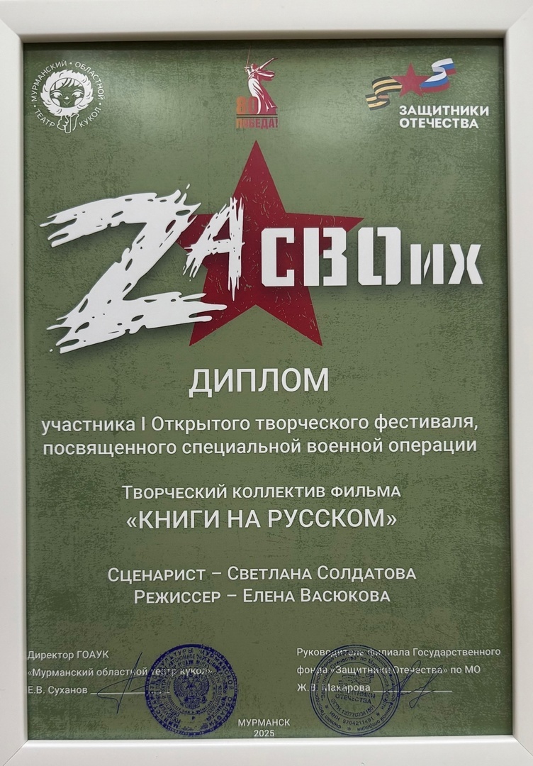Творческий коллектив фильма «Книги на русском» принял участие в I Открытом творческом фестивале «Za СВОих», посвященном специальной военной операции. Фестиваль организовал Мурманский областной театр кукол.